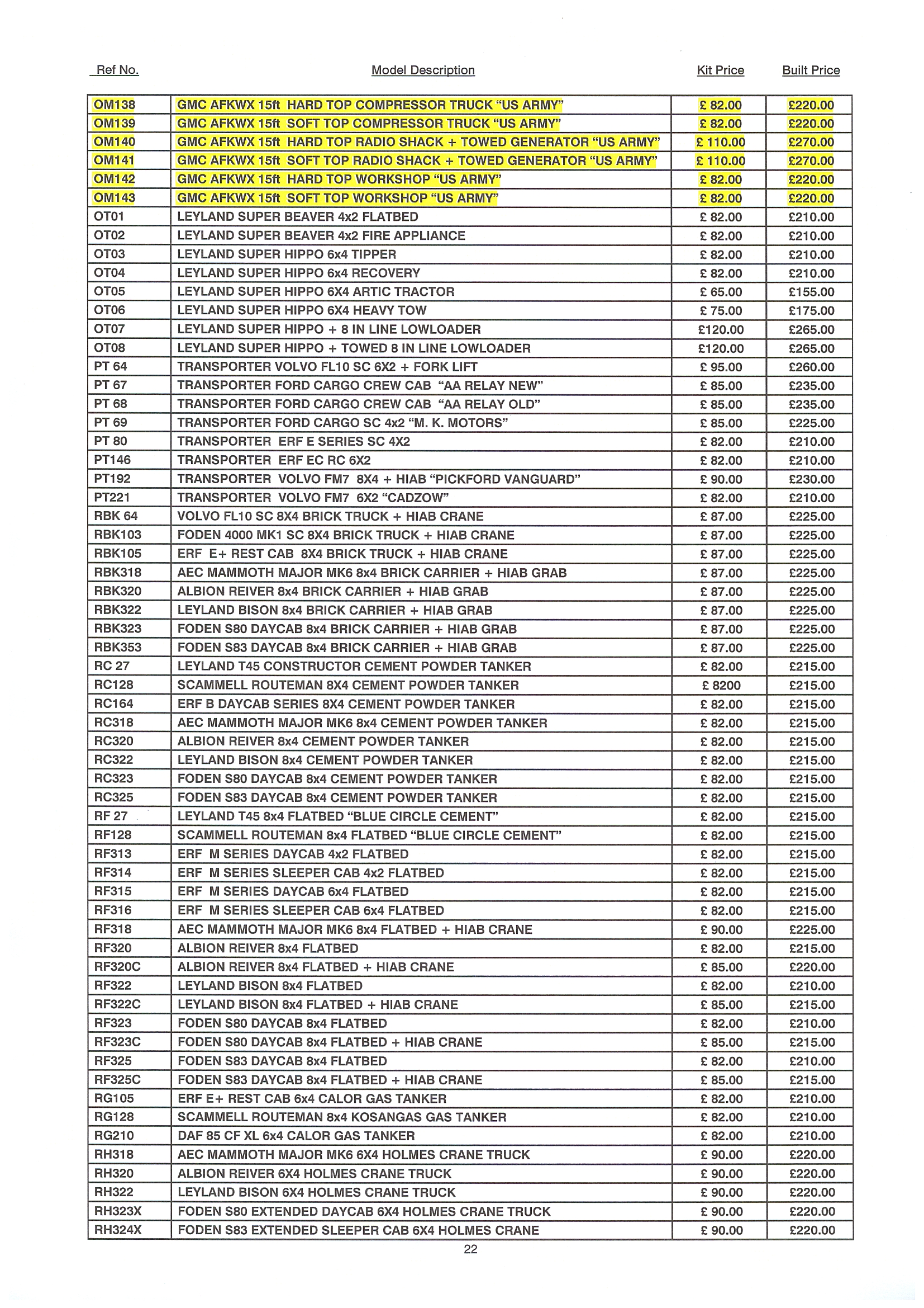 ASAM Models are now accepting orders for built military models at prices listed in Price List July 2022.